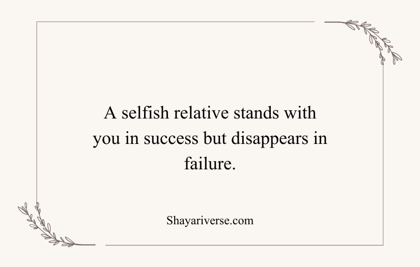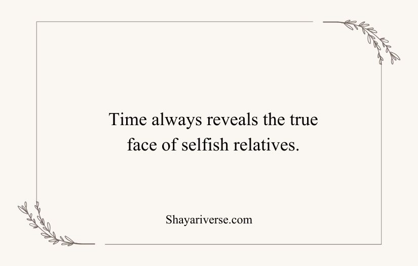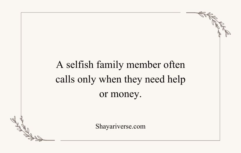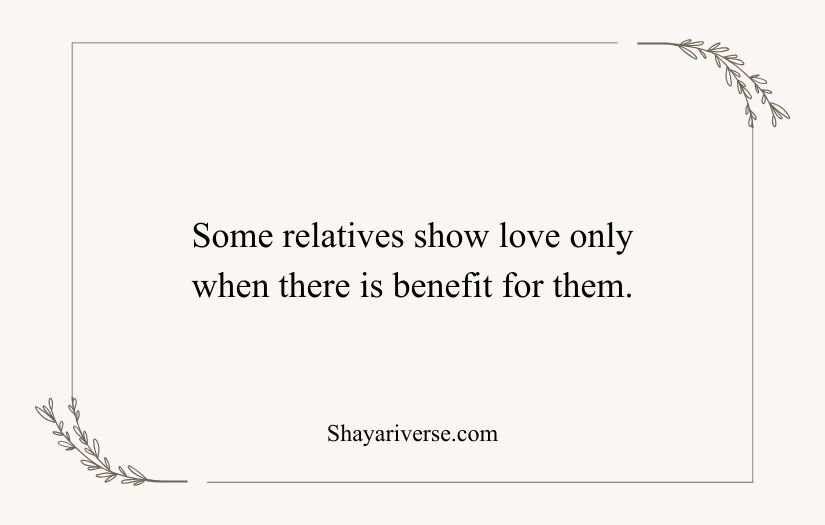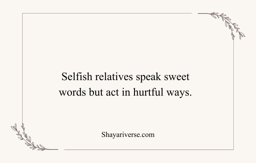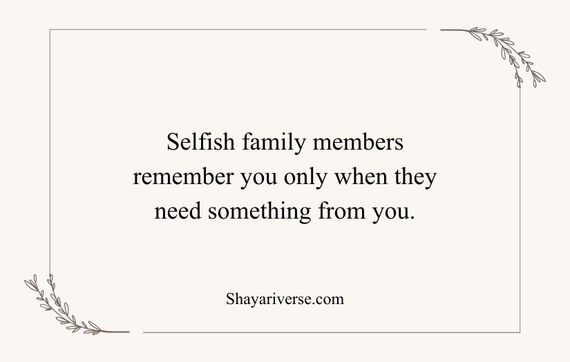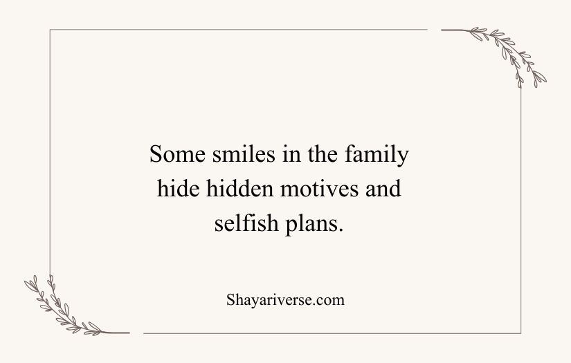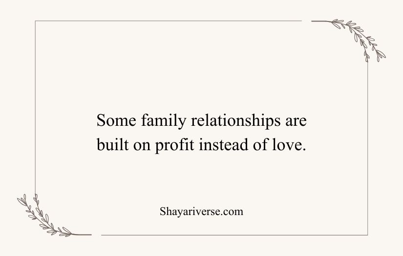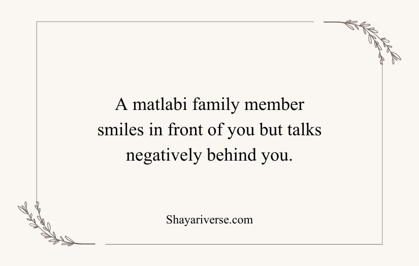 Family matlabi rishte quotes talk about the painful reality of selfishness within close relationships. They express how sometimes even family members may act for their own benefit, ignoring emotions and trust. These quotes reflect the hurt, disappointment, and confusion that come when expectations from loved ones are broken.