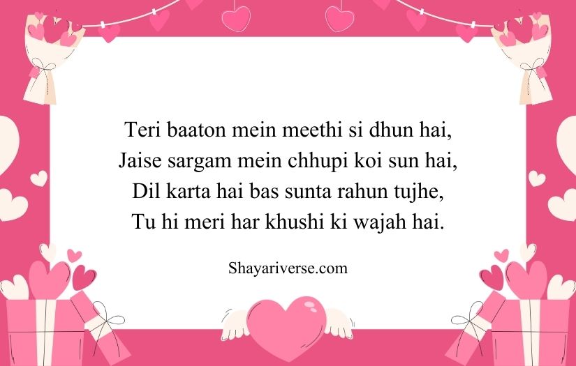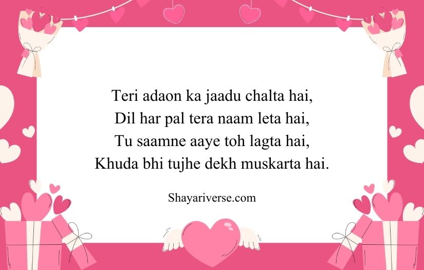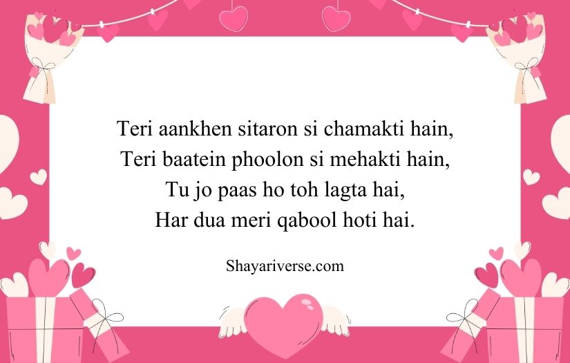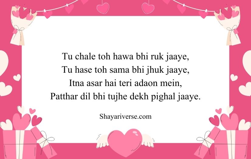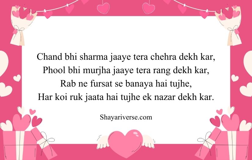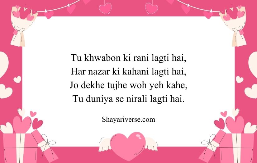This type of shayari is often filled with compliments and heartfelt emotions. It may describe her smile, eyes, or the happiness she brings to someone’s life. The beauty of such shayari lies in its ability to turn simple feelings into meaningful and memorable words that make the girl feel valued and admired.
