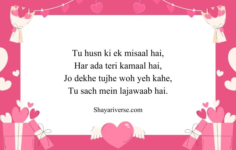 Shayari for beautiful girl is a poetic way to express admiration, love, and appreciation for someone’s beauty and charm. These shayari lines often describe not only physical beauty but also the grace, kindness, and personality that make a girl truly special. Through soft and romantic words, the poet tries to capture the feelings that her presence creates.
